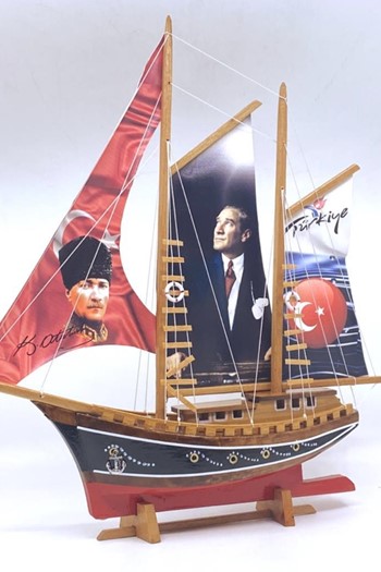 Doğal Ahşap El Yapımı Gemi Maketi - ATATÜRK Temalı