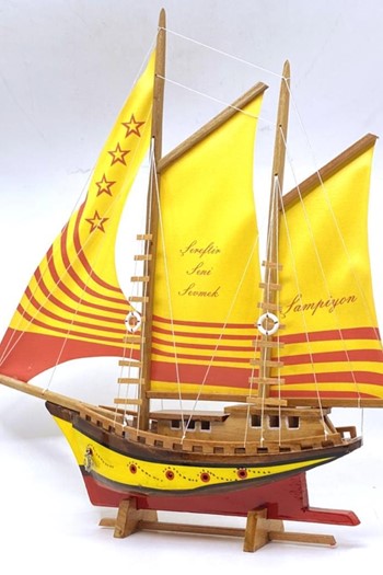 Doğal Ahşap El Yapımı Gemi Maketi - SARI KIRMIZI Temalı