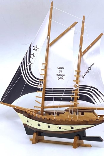 Doğal Ahşap El Yapımı Gemi Maketi - SİYAH BEYAZ Temalı