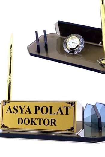 Kişiye Özel Saatli Tasarım Kristal Cam Masa İsimliği