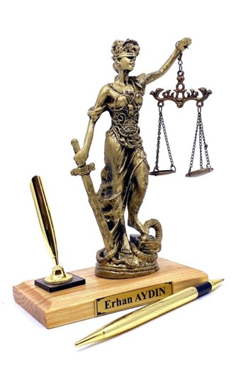 Kişiye Özel Tasarım Ahşap Kaideli Adalet Heykeli ve İmza Kalemi
