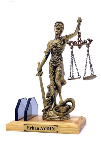 Kişiye Özel Tasarım Ahşap Kaideli Adalet Heykeli ve Kartvizit