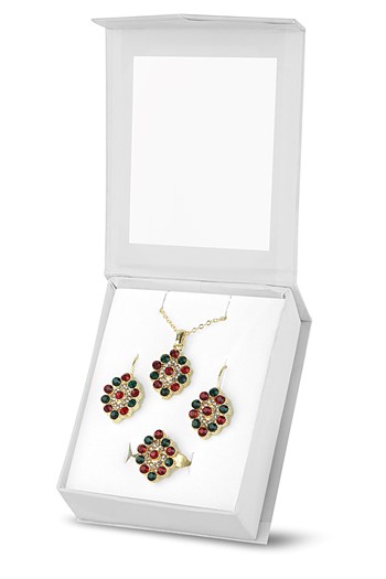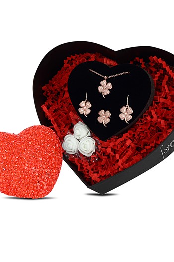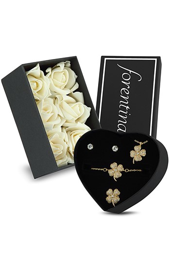 Forentina Güllü Kutuda Yonca Kolye Küpe Bileklik Yüzük Set PS1641