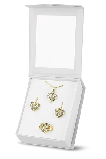 Forentina Gümüş Kaplama Kalpli Kolye Küpe Yüzük Set PS1645