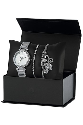Forentina Beyaz Taşlı Kombin Saat Şans Bilekliği Set PS1651