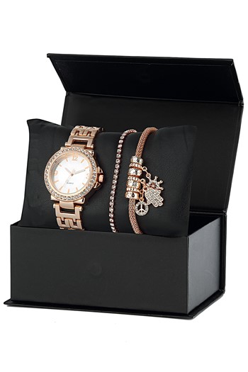 Forentina Rose Taşlı Kombin Saat Seti Hediye Set PS1652