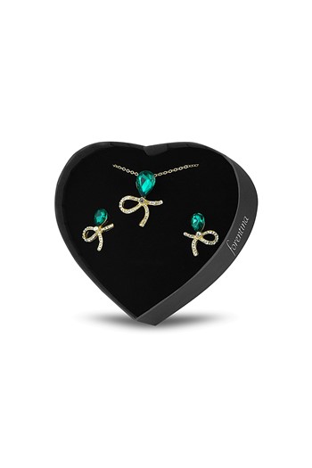 Forentina Yonca Kolye Küpe Yüzük Set - Led Kalpli Lamba PS1672