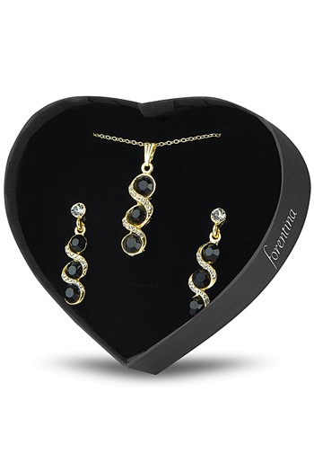 Forentina Tria Siyah Taşlı Kolye Küpe Set PS1655