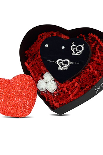 Forentina Çift Kalp Kolye Küpe Bileklik - Led Lamba PS1669