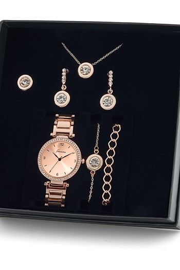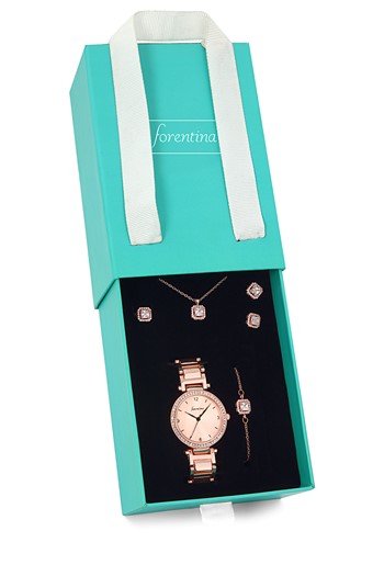Forentina Rose Tektaş Kolye Küpe Bileklik Saat Hediye Set PS1677