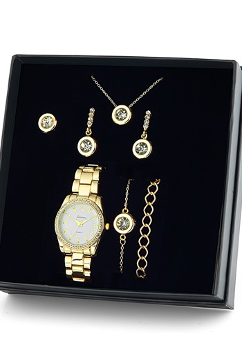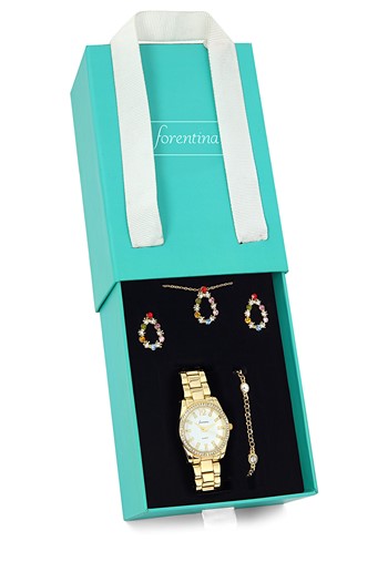 Forentina Tektaş Kolye Küpe Bileklik Yüzük Saat Hediye Set PS1675