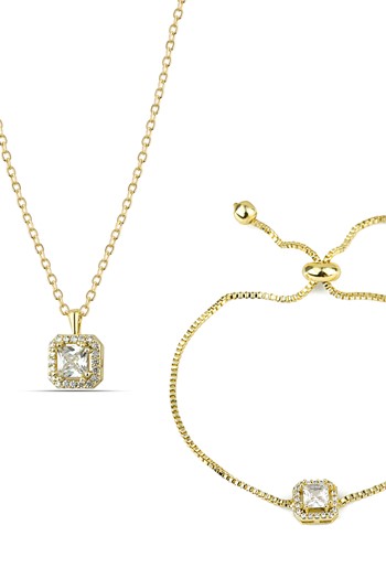 Forentina Sarı Tektaş Kolye Bileklik Set PS1684