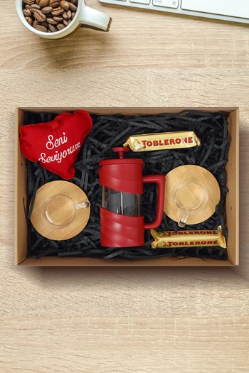 French Press & 2 Kahve Fincanı Toblerone Çikolata Seni Seviyorum Yastık PS1693
