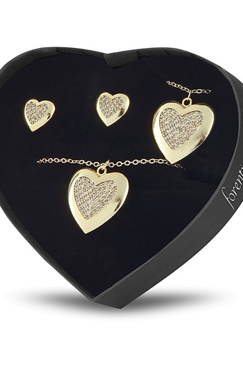Forentina Kalbimin Aynası Gümüş Kaplama Kalpli Kolye Küpe Bileklik PS1698