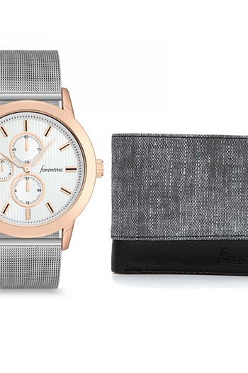 Forentina Gri Hasır Kol Saati - Gri Cüzdan Kombin Set PS1880