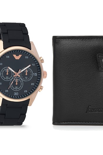 Forentina Siyah Silikon Kol Saati - Siyah Cüzdan Set PS1881