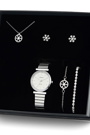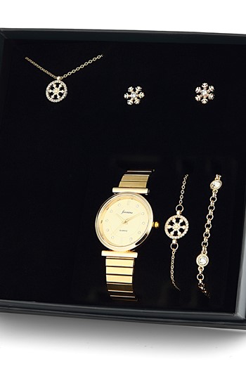 Forentina Altın Kaplama Kar Tanesi Kolye Küpe Bileklik Saat Hediye Takı Seti PS1887