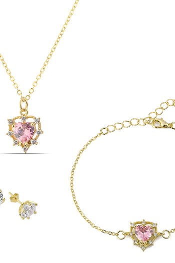 Forentina Zirkon Pempe Taşlı Kolye Küpe Bileklik Takı Seti PS1902