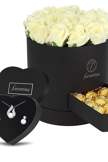 Forentina İnci Modeli Kolye Küpe Set Güllü Kutu Çikolata Hediye Set PS1905