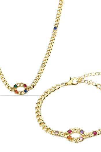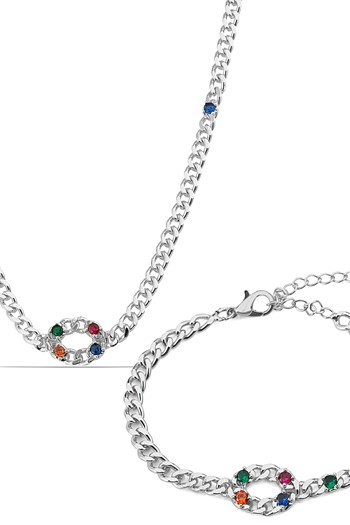 Forentina Gümüş Kaplama Renkli Taşlı Kolye Bileklik Takı Seti PS1919
