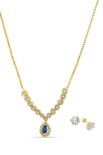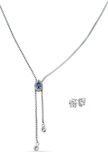Forentina Lacivert Taşlı Tasarım Kolye Zirkon Küpe Takı Seti PS1921