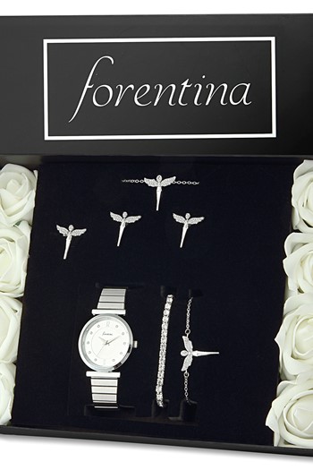 Forentina Melek Kolye Küpe Bileklik Yüzük Saat Hediye Set PS2162