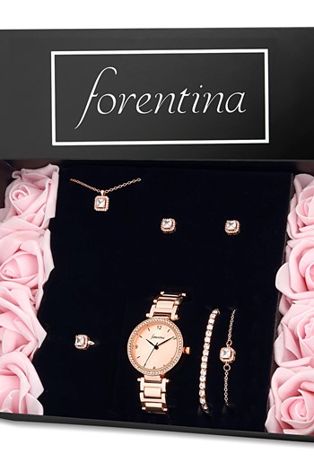 Forentina Rose Tektaş Kolye Küpe Bileklik Yüzük Saat Hediye Set PS2166