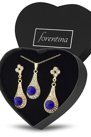 Forentina Lacivert Taşlı Kolye Küpe Takı Seti Kalpli Kutuda PS2170