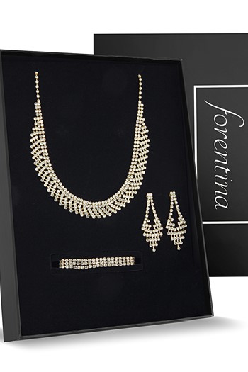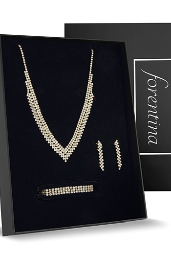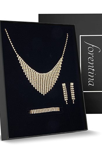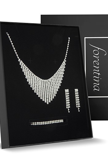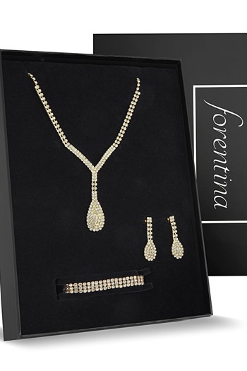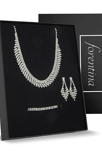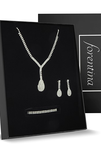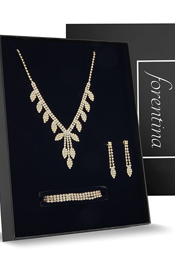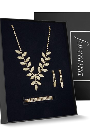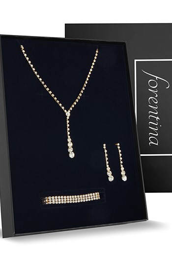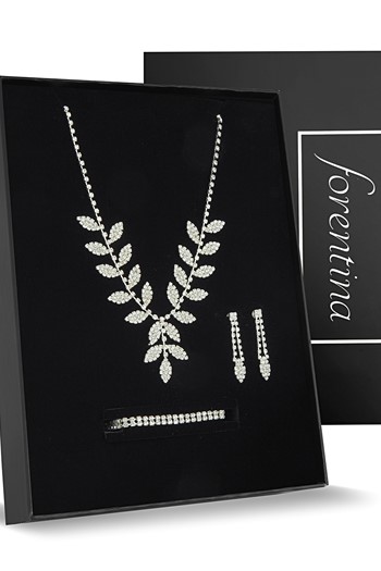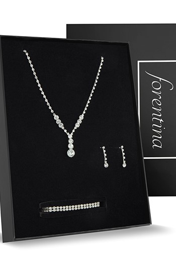 Forentina Tria Kolye Küpe Bileklik Düğün Takı Seti PS2179