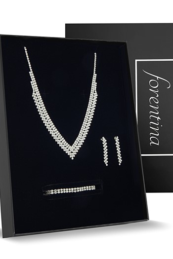 Forentina Gümüş Kaplama Kolye Küpe Bileklik Düğün Seti PS2176
