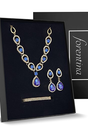 Forentina Lacivert Taşlı kolye Küpe Bileklik Düğün Seti PS2185