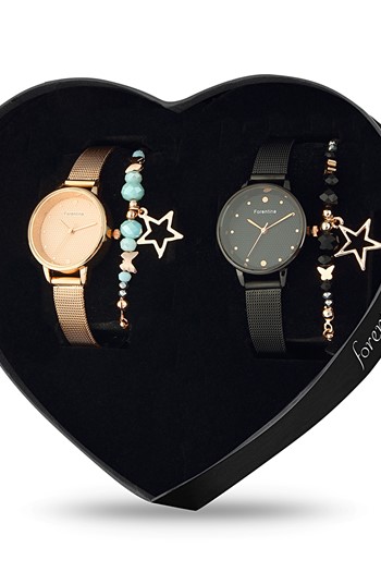 Forentina Kadın Çiftli Kol Saati Set- Kalpli Kutuda Hediye Set PS2189