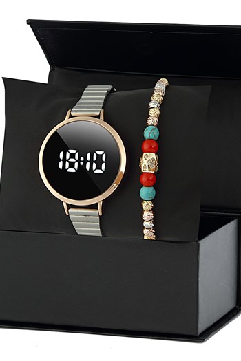 Forentina Gri Digital Kol Saati Bileklik Kombin Set PS2196