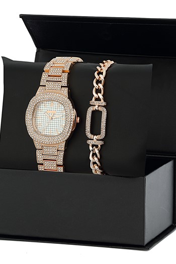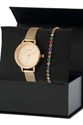 Forentina Altın Kaplama Zirkon Taşlı Kol Saati Bileklik Kombin Set PS2203
