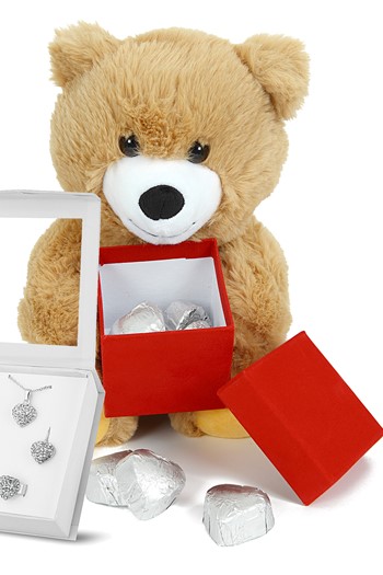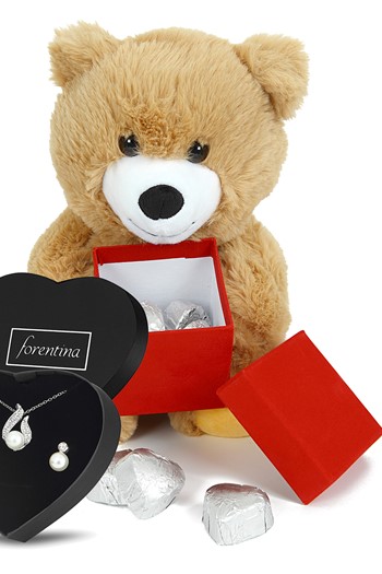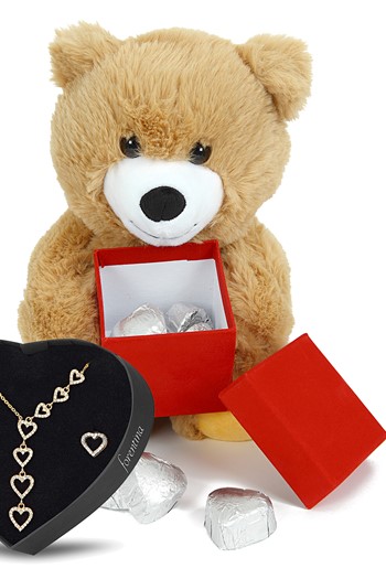Forentina Gümüş Kaplama Kalpli Takı Seti - Ayıcık Ve Çikolata Hediye Seti PS2208
