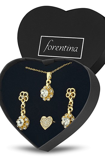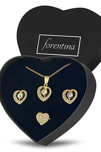 Forentina Altın Kaplama Kalpli Kolye Küpe Yüzük Takı Seti PS2215