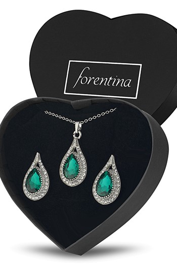 Forentina Yeşil Su Yolu Kolye Küpe Takı Seti PS2219