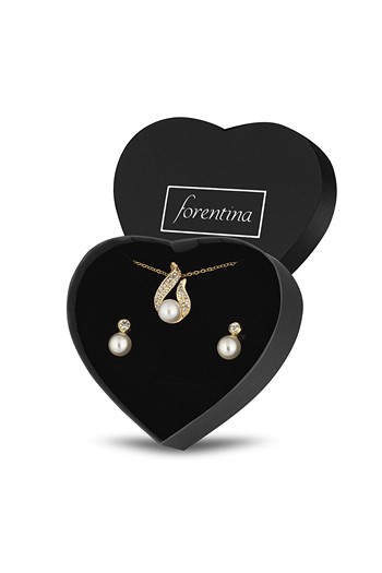 Forentina İnci Modeli Kolye Küpe Takı Seti Özel Kalpli Kutusunda Hediye Set PS2357