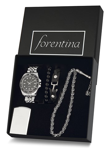 Forentina Erkek Metal Kol Saati Bileklik Tesbih Çakmak Kombin PS2363