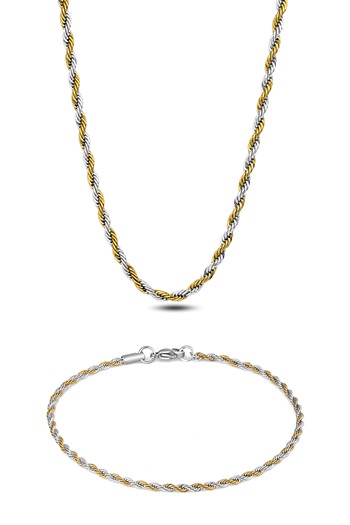Forentina Erkek Çelik Çift Renk Zincir Bileklik Kombin Set PS2370