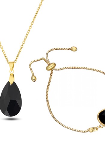 Forentina Altın Kaplama Siyah Taşlı Kolye Bileklik Takı Seti PS2373