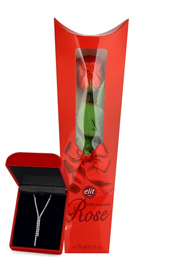 Forentina Gümüş Kaplama Su Yolu Kolye - Gül Şeklinde Çikolata Hediye Set PS2376