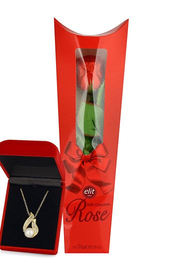 Forentina Altın Kaplama İnci Modeli Kolye - Gül Şeklinde Çikolata Hediye Set PS2377