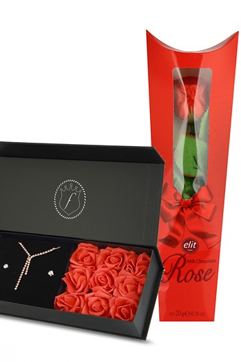 Forentina Rose Su Yolu Takı Set - Güllü Kutuda- Gül Şeklinde Çikolata Set PS2378