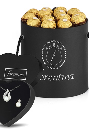 Forentina İnci Modeli Kolye Küpe Set - Çikolata Hediye Set PS2380