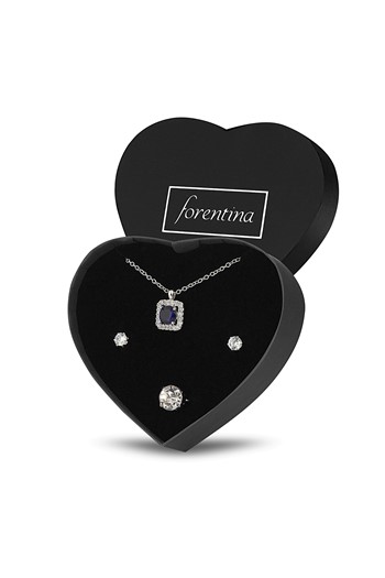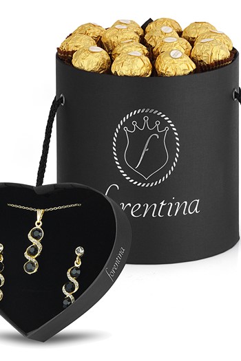 Forentina Tria Siyah Taşlı Kolye Küpe Set - Çikolata Kutu Hediye PS2381