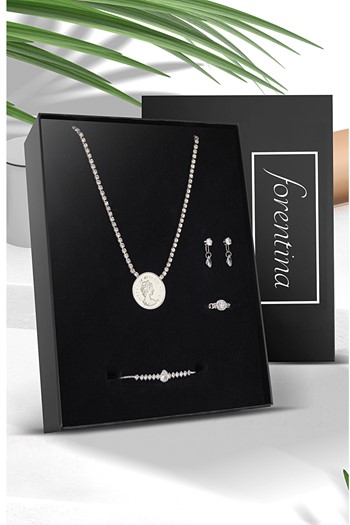 Forentina Tria Modeli Kolye Küpe Yüzük Takı Seti PS2390