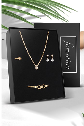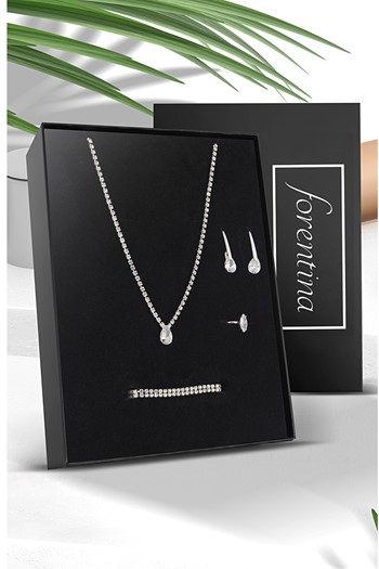 Forentina Damla Modeli Kolye Küpe Bileklik Yüzük Takı Seti PS2387