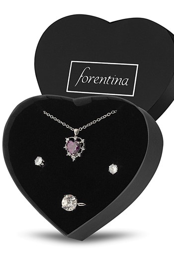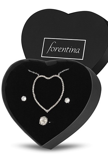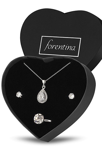 Forentina Zirkon Kalp Taşlı Kolye Küpe Yüzük PS2410