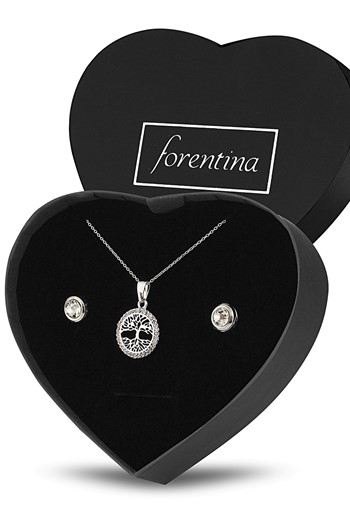 Forentina Hayat Ağacı Kolye Tektaş Küpe Takı Seti PS2404